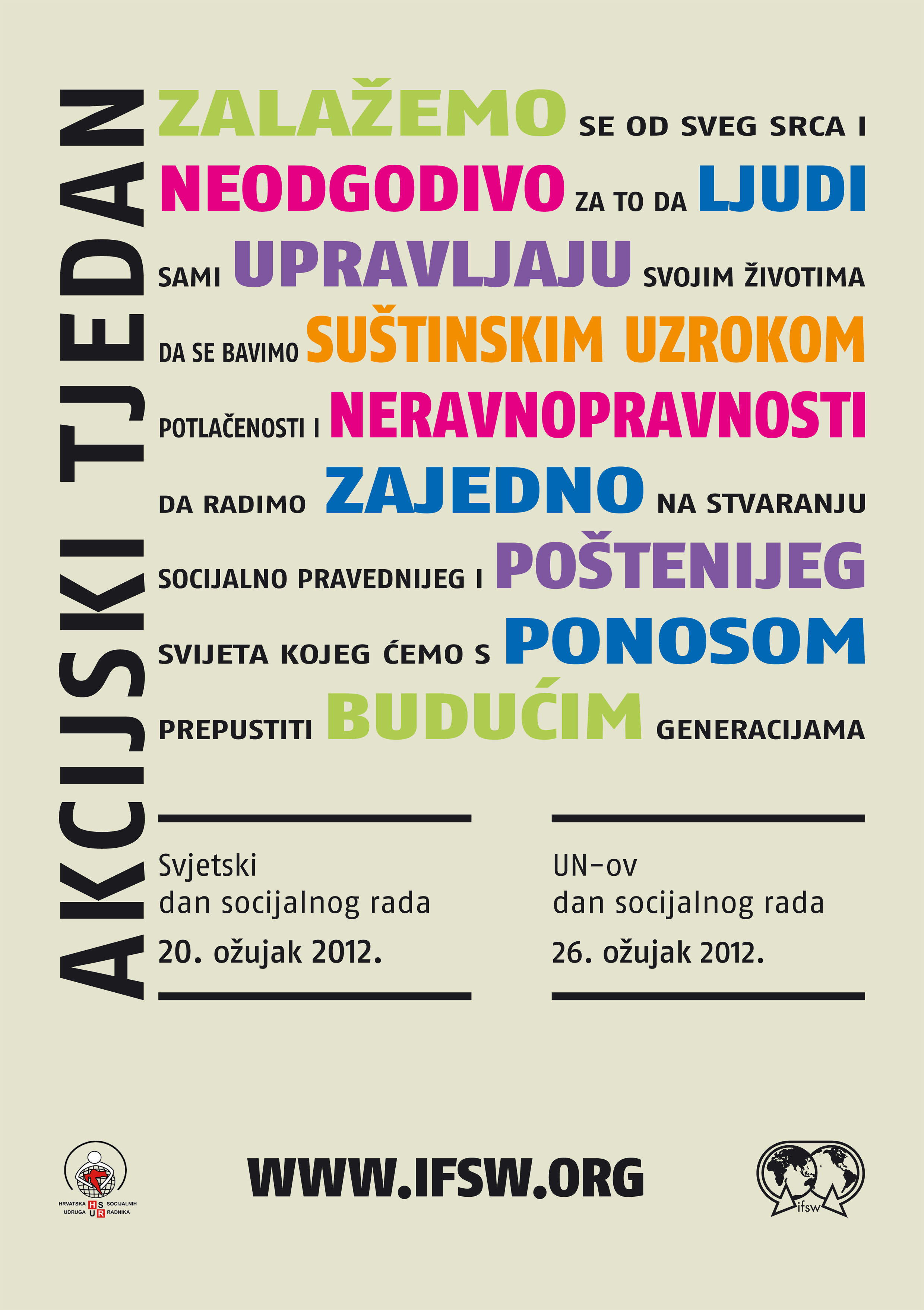 Hrvatska udruga socijalnih radnika (HUSR) je kao članica Međunarodne organizacije socijalnih radnika (IFSW) obilježila Svjetski akcijski tjedan socijalnog rada koji je započeo 20. ožujka Svjetskim danom socijalnog rada i završio 26. ožujka 2012. godine Danom socijalnog rada Ujedinjenih naroda.