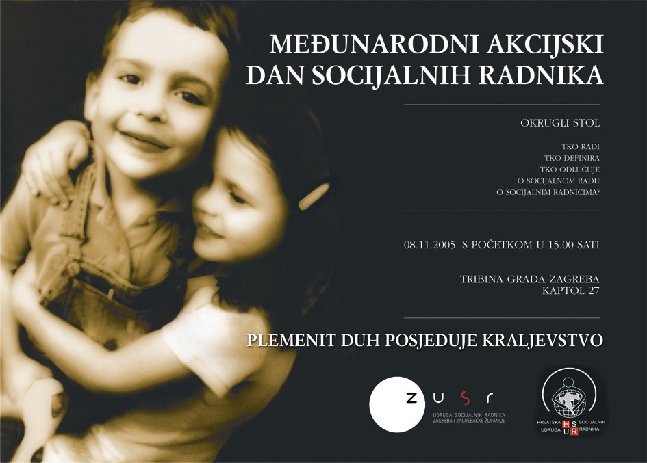 Povodom Međunarodnog akcijskog dana socijalnih radnika, Hrvatska udruga socijalnih radnika u suradnji s Udrugom socijalnih radnika Grada Zagreba i Zagrebačke županije organizirala je okrugli stol na temu „Tko radi, tko definira, tko odlučuje o socijalnom radu, o socijalnim radnicima?“.